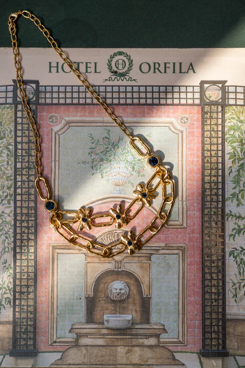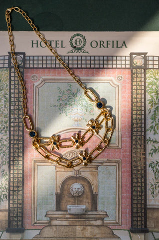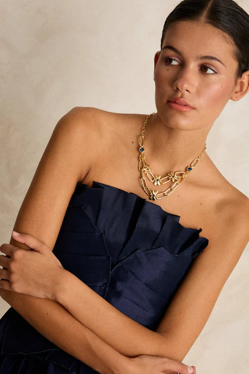 Este collar de doble cadena combina fuerza y delicadeza en una composición que evoca lo natural con un giro contemporáneo. Una pieza escultural, perfecta para destacar en ocasiones especiales o transformar un look cotidiano en algo extraordinario.