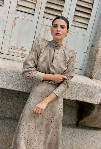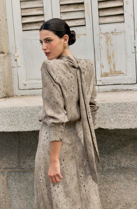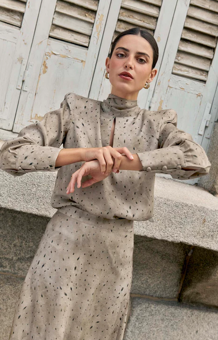 Esta camisa Filipa combina un cuello subido elegante, lazada trasera, escote y delicadas hombreras que aportan estructura y estilo. Perfecta para lucir con la falda Filipa a juego en un conjunto sofisticado o con pantalón denim para un look casual y moderno. Una prenda versátil que realza cualquier outfit.