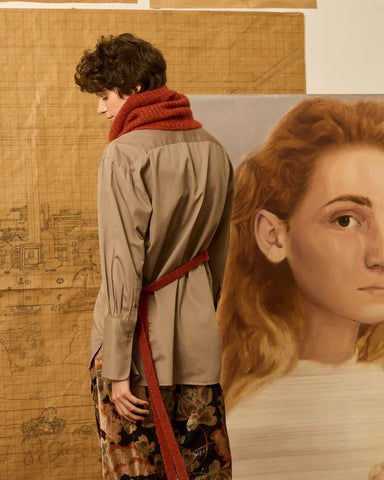 Cuerpo delantero de lana de cuello alto y cintas para abrochar en cintura